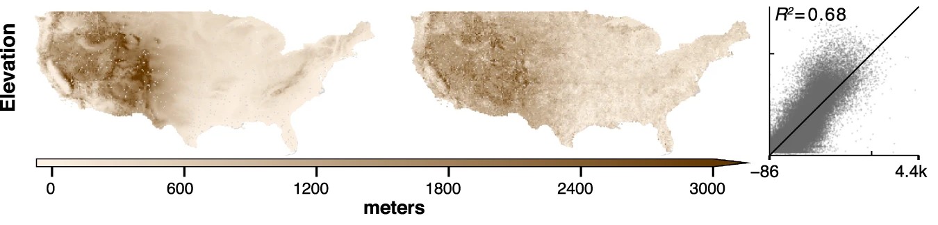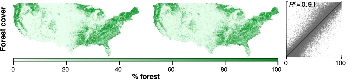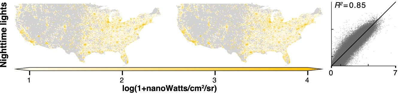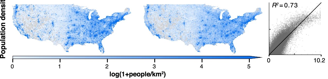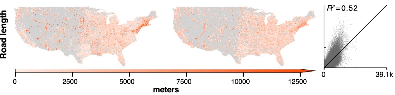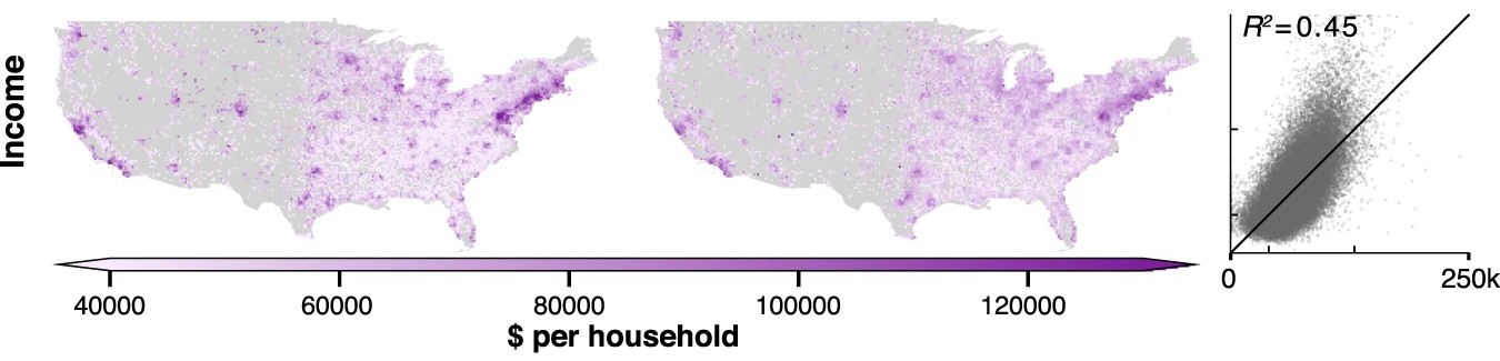 Cette démo reproduit les résultats clés de la publication originale de MOSAIKS (Rolf et al. 2021). Alors que MOSAIKS a un grand potentiel pour améliorer l’accès à la prédiction par satellite dans des régions avec de faibles données, l’article d’origine s’est concentré sur la démonstration de performances aux États-Unis où des données d’entraînement de haute qualité étaient facilement disponibles.